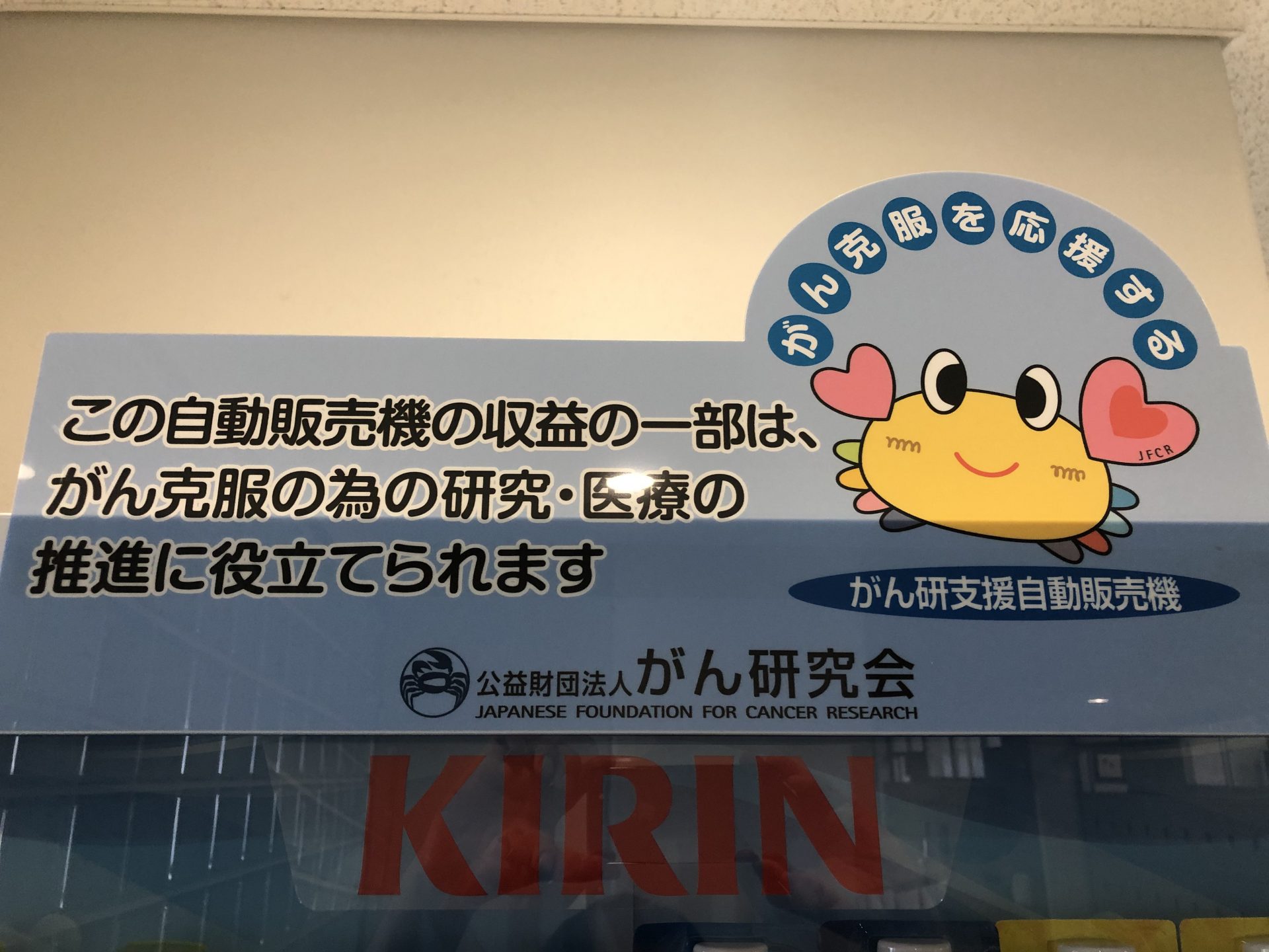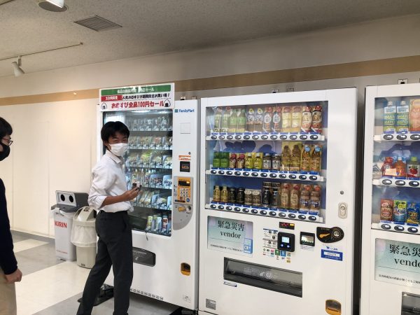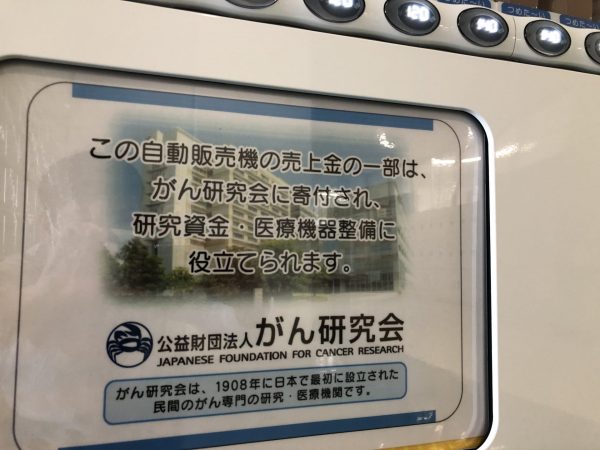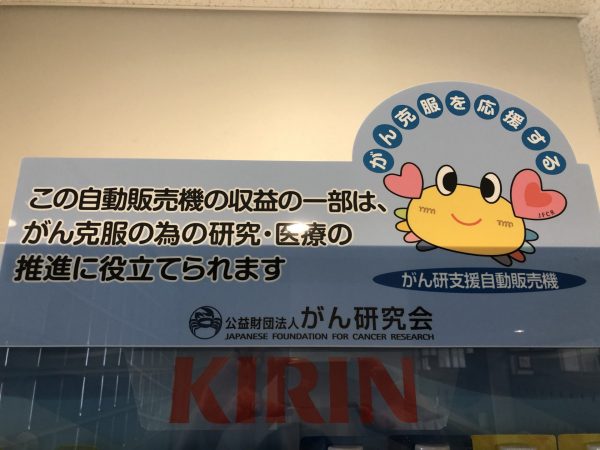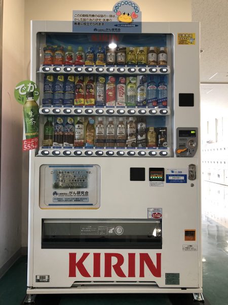 また、3・4・5階の飲み物の自販機は、ある生徒の提案により寄付型自販機となっております。1本買うと2円が「がん研究会」に寄付されます。
