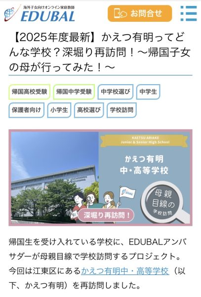【帰国生教育】トモノカイEDUBALさんに紹介していただきました。
