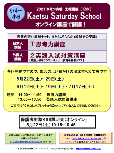 2021年度のKSSは、5月からオンラインで開講します!